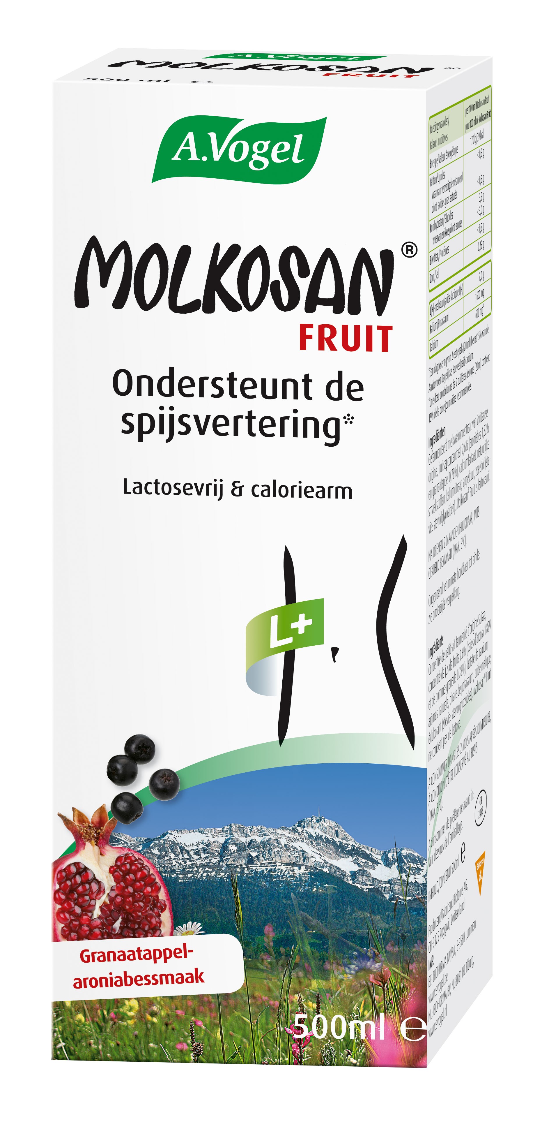 Molkosan® Fruit de A.Vogel est une boisson de petit-lait avec des fruits et du calcium. C'est une source de calcium qui contribue à une digestion équilibrée. La combinaison de petit-lait, de pomme-grande, de baies d'aronia et de stevia procurent à Molkosan® Fruit un goût doux et agréable, rafraîchissant et légèrement acidulé.