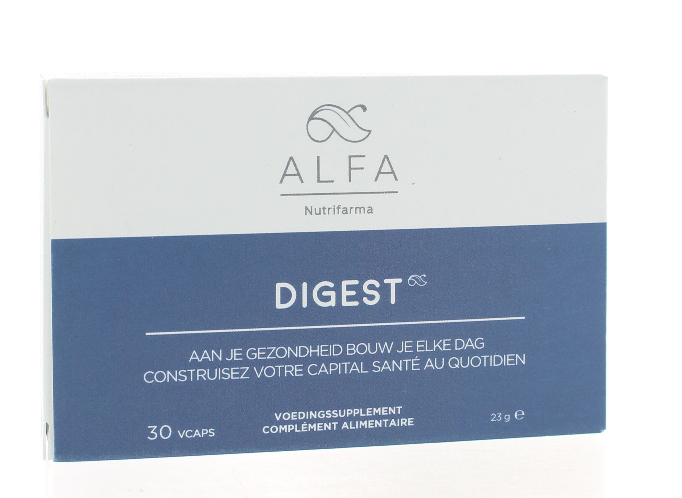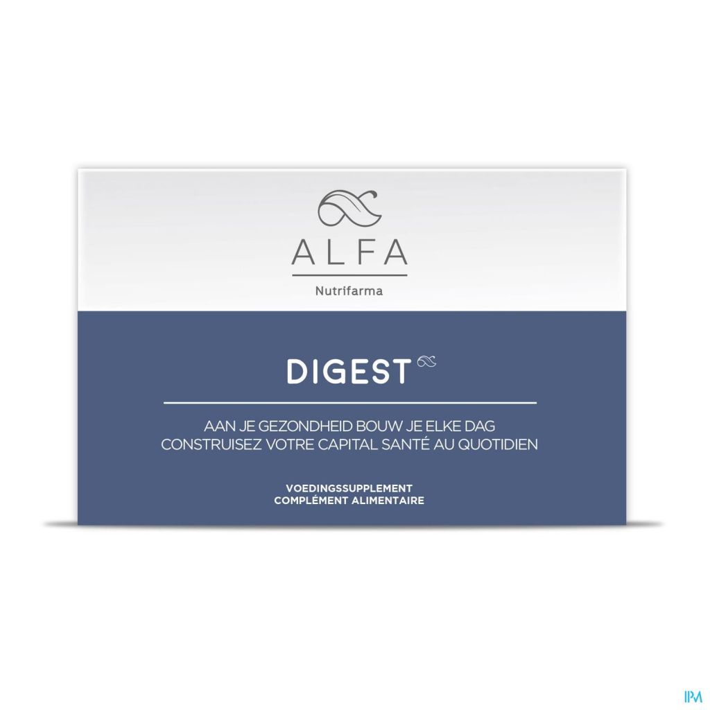 Alfa Digest est un complément alimentaire des laboratoires Nutrifarma qui contribue à une meilleure digestion des protéines et à un bon fonctionnement du système digestif. ll contient des enzymes qui divisent les protéines. Il procure une sensation très rapide d'un estomac et d'un intestin léger.