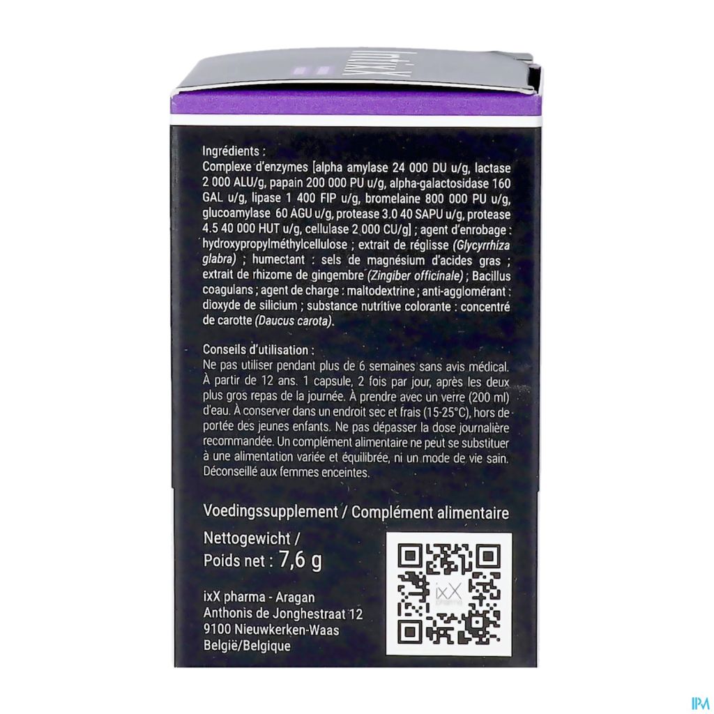 500 mg de ZyMate®Max (a-amylase, lactase, glucoamylase, protéase, bromélaïne, papaïne, lipase et cellulase)