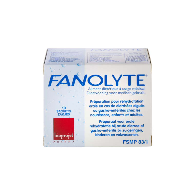 Alimentation diététique en cas de diarrhée ou de gastro-entérite aiguë chez le nourrisson, l'enfant et l'adulte. Nutrition diététique à usage médical. Fanolyte est une solution de réhydratation qui aide à rétablir l'équilibre hydrique en cas de perte de liquide, par exemple lors d'une diarrhée aiguë ou d'une gastro-entérite. Les nourrissons et les jeunes enfants en particulier peuvent rapidement se déshydrater lorsque la perte de liquide par les selles dépasse la quantité qu'ils boivent, ce qui est exacerbé par les vomissements.