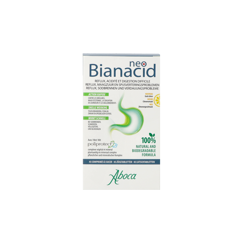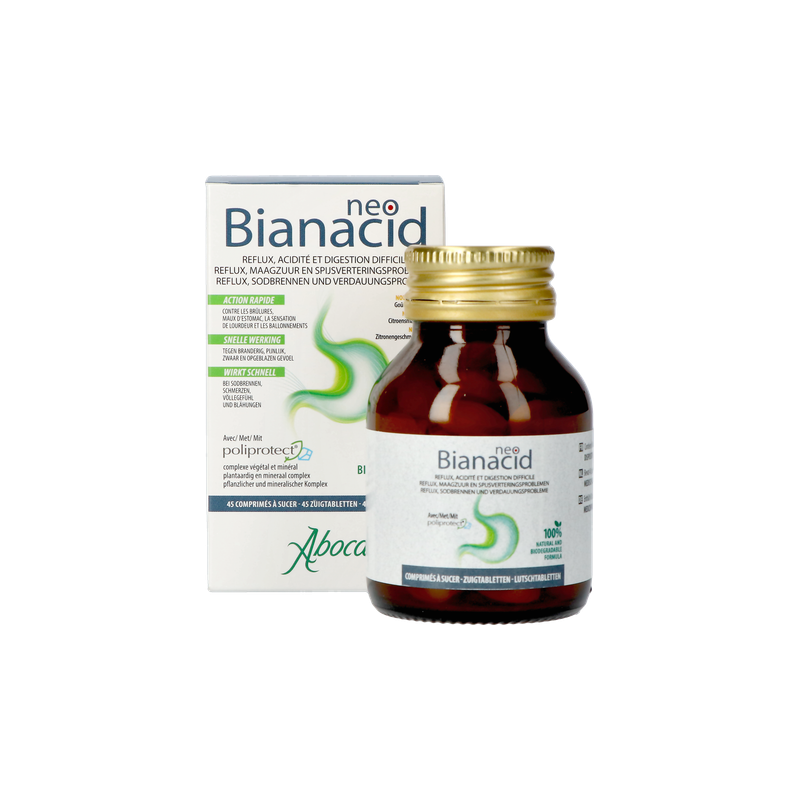 NeoBianacid est un produit à base de Poliprotect ® - complexe végétal et minéral - qui renforce l'action protectrice du mucus qui recouvre naturellement la muqueuse. Il a une formule 100 % naturelle, à base d'ingrédients issus de l'Agriculture Biologique.