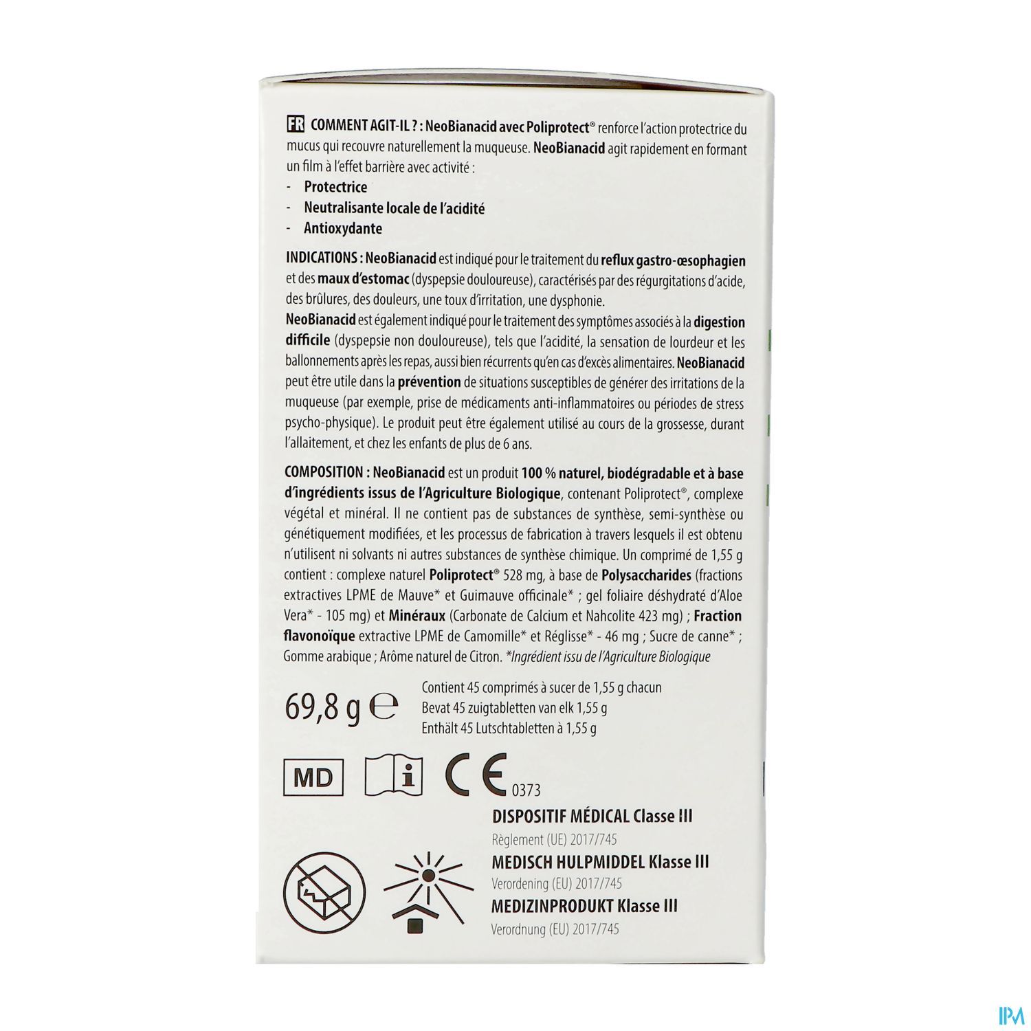 NeoBianacid est un produit à base de Poliprotect ® - complexe végétal et minéral - qui renforce l'action protectrice du mucus qui recouvre naturellement la muqueuse. Il a une formule 100 % naturelle, à base d'ingrédients issus de l'Agriculture Biologique.
