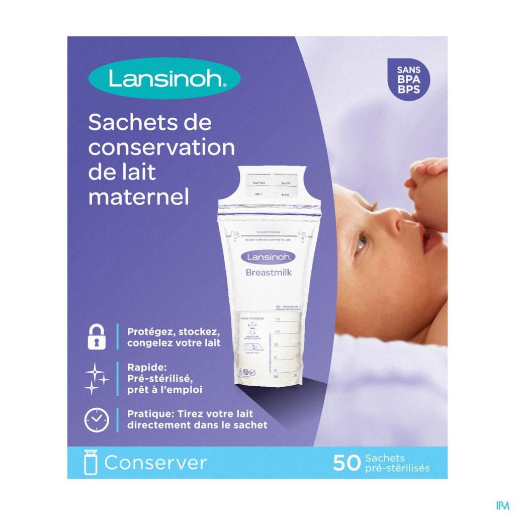 Les sachets de conservation du lait maternel Lansinoh®, pré-stérilisés et étanches, sont la solution idéale pour conserver votre lait au réfrigérateur ou au congélateur, à plat ou en position verticale. C'est aussi un accessoire pour conserver votre lait maternel et faire des réserves pour plus tard !