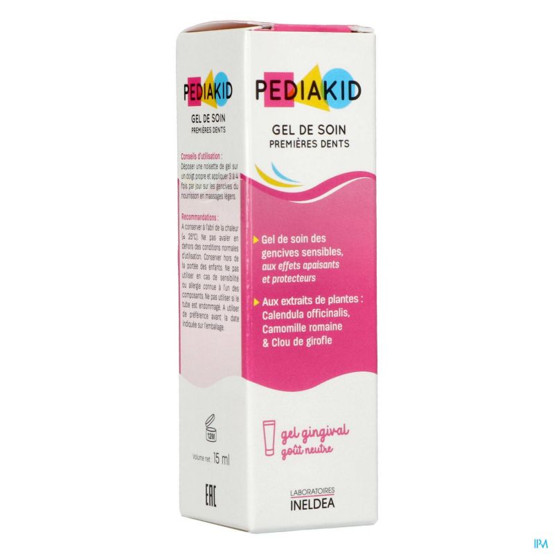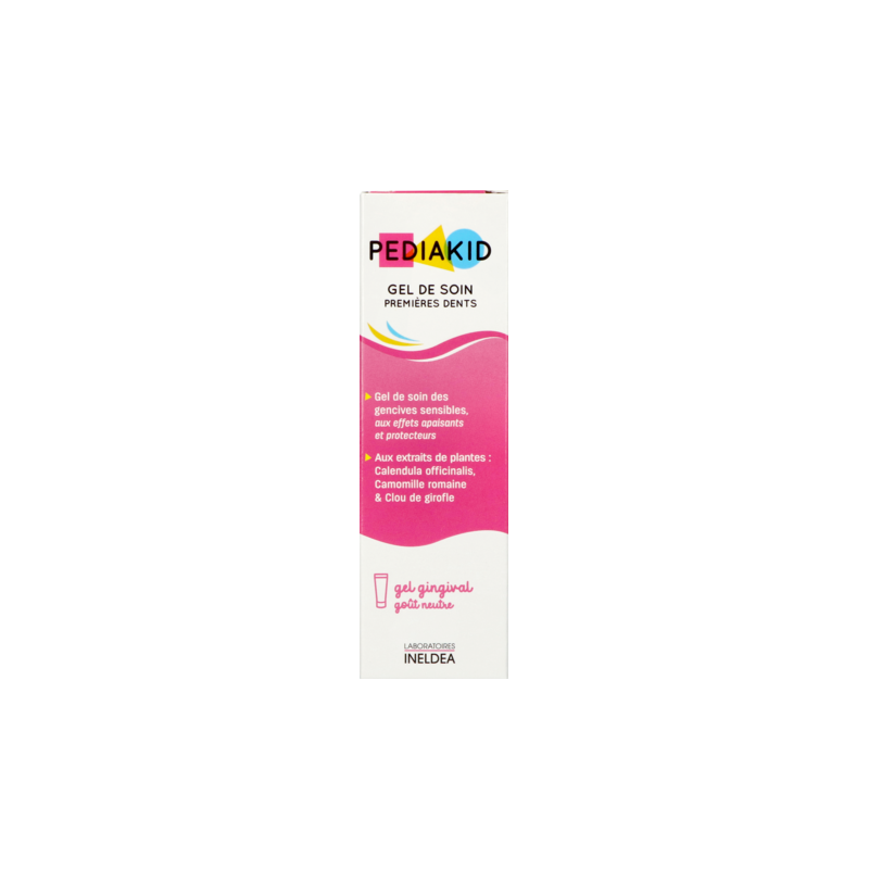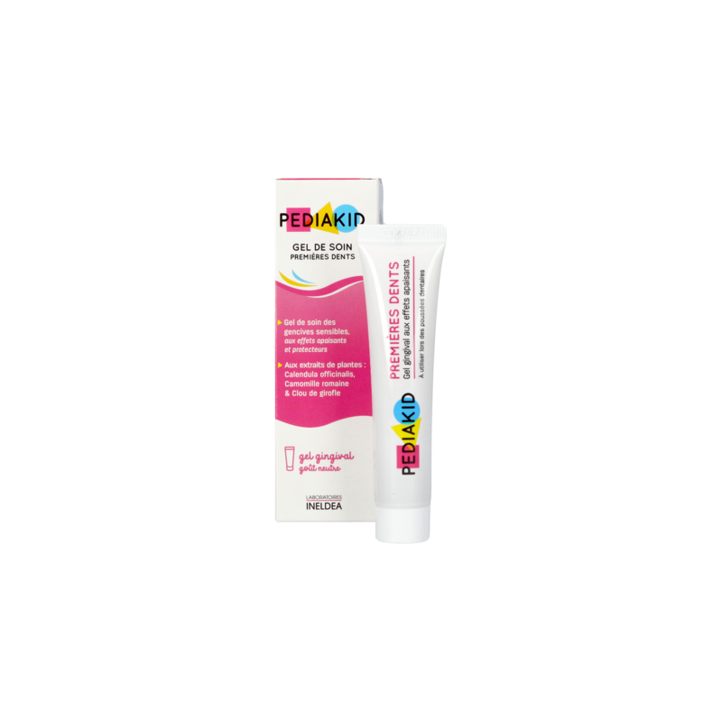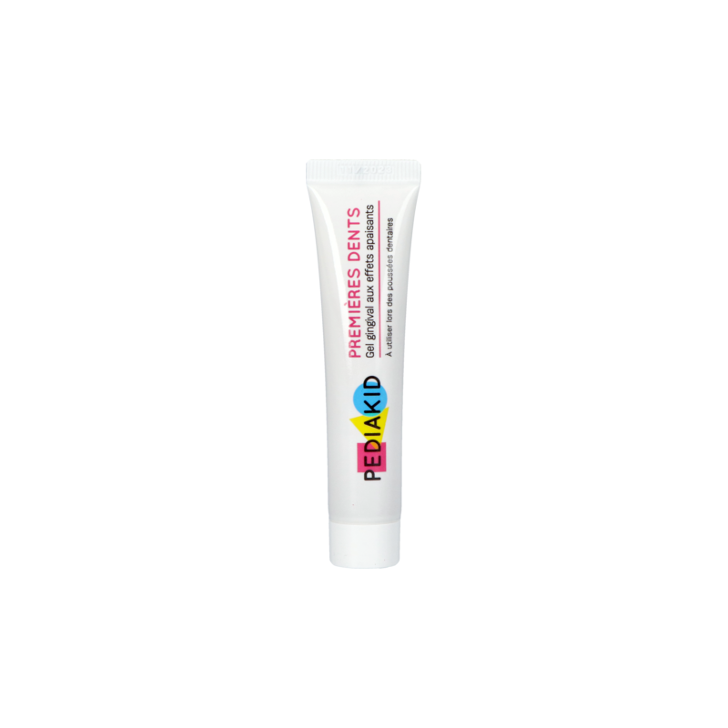 Le gel PEDIAKID® Soin Premieres Dents, parfaitement adapté aux nourrissons, est une formule exclusive à base de gomme d'acacia, de calendula, de camomille et de clou de girofle 100% naturels. Les fibres d'acacia ont un effet protecteur sur les gencives de bébé grâce à leur effet filmogène. L'association de la camomille, du calendula et du clou de girofle apaise les gencives et a un effet antibactérien. Sans phénoxyéthanol ni colorant, le gel Soin Premieres Dents peut être appliqué sur les gencives de bébé en légers massages dès l'apparition des premières dents.
