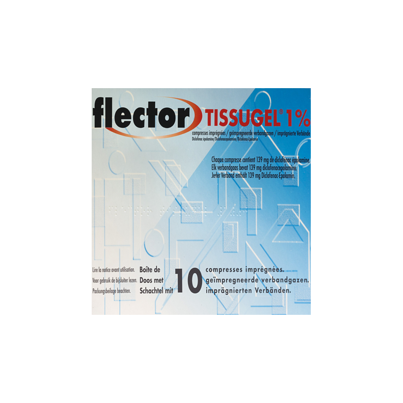 FLECTOR TISSUGEL COMPRESSE IMPREGNEE (10) est un médicament : merci de lire attentivement la notice. Pas d'utilisation prolongée sans avis médical.