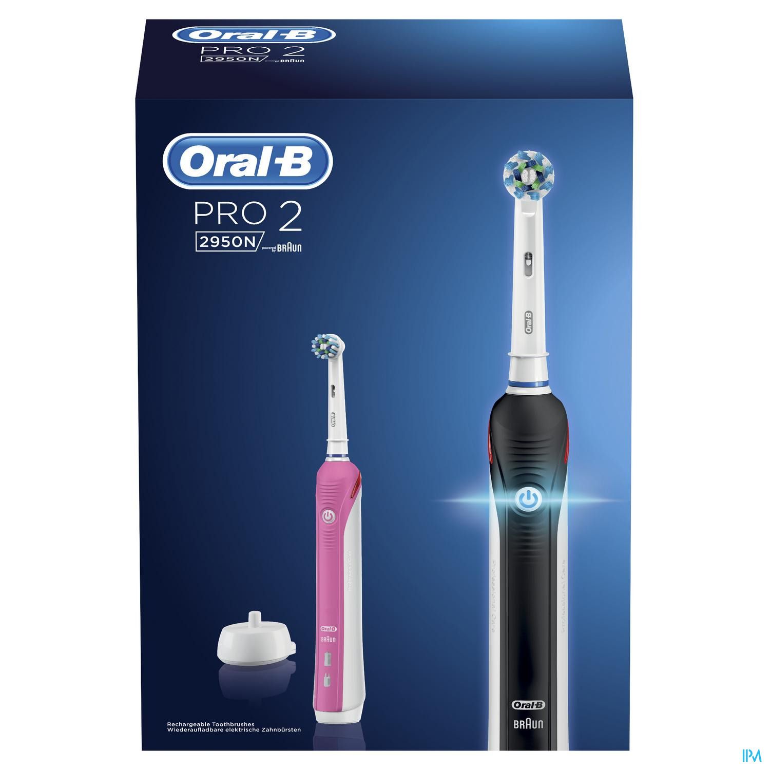 • Contenu : 2 manches de brosse à dents électrique avec chargeur, 2 brossettes