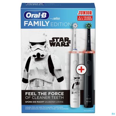 1. La brosse à dents électrique Oral-B Junior Star Wars pour les enfants âgés de 6 ans et plus est conçue en collaboration avec des dentistes pour un nettoyage supérieur. Pour protéger les gencives sensibles des enfants, la brosse à dents est équipée d'un capteur de pression qui fait clignoter une lumière rouge et réduit la vitesse de brossage s'il détecte que vous brossez trop fort. En outre, la tête de la brosse ronde est dotée de poils extra doux. Pour rendre le brossage encore plus amusant, il peut être utilisé avec l'application gratuite Disney Magic Timer d'Oral-B. 90 % des enfants se brossent les dents plus longtemps lorsqu'ils utilisent l'application. C'est la brosse qui permet d'apprendre aux enfants à se brosser les dents de manière autonome et à développer une habitude de brossage saine qui leur servira toute leur vie.