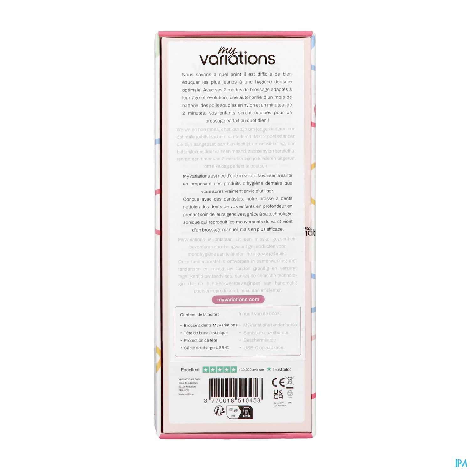 Conçue en partenariat avec des dentistes et recommandée par l'UFSBD, la brosse MyVariations KIDS est équipée de la technologie sonique : efficace sans abimer les gencives de vos enfants, et dispose d'un mois d'autonomie ! Elle s'adaptera parfaitement à vos enfants de 3 à 12 ans grâce à ses 2 modes de brossage, et nettoiera leurs dents en profondeur.