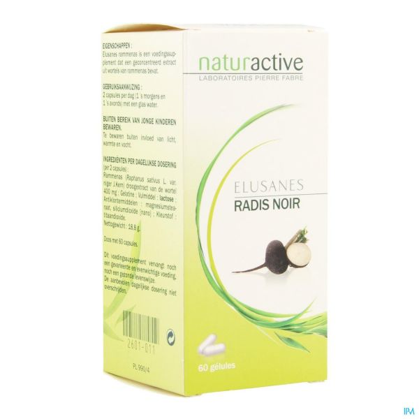 1 gélule matin et soir (soit 400 mg d'extrait de racine de radis noir par jour) avec un grand verre d'eau.
