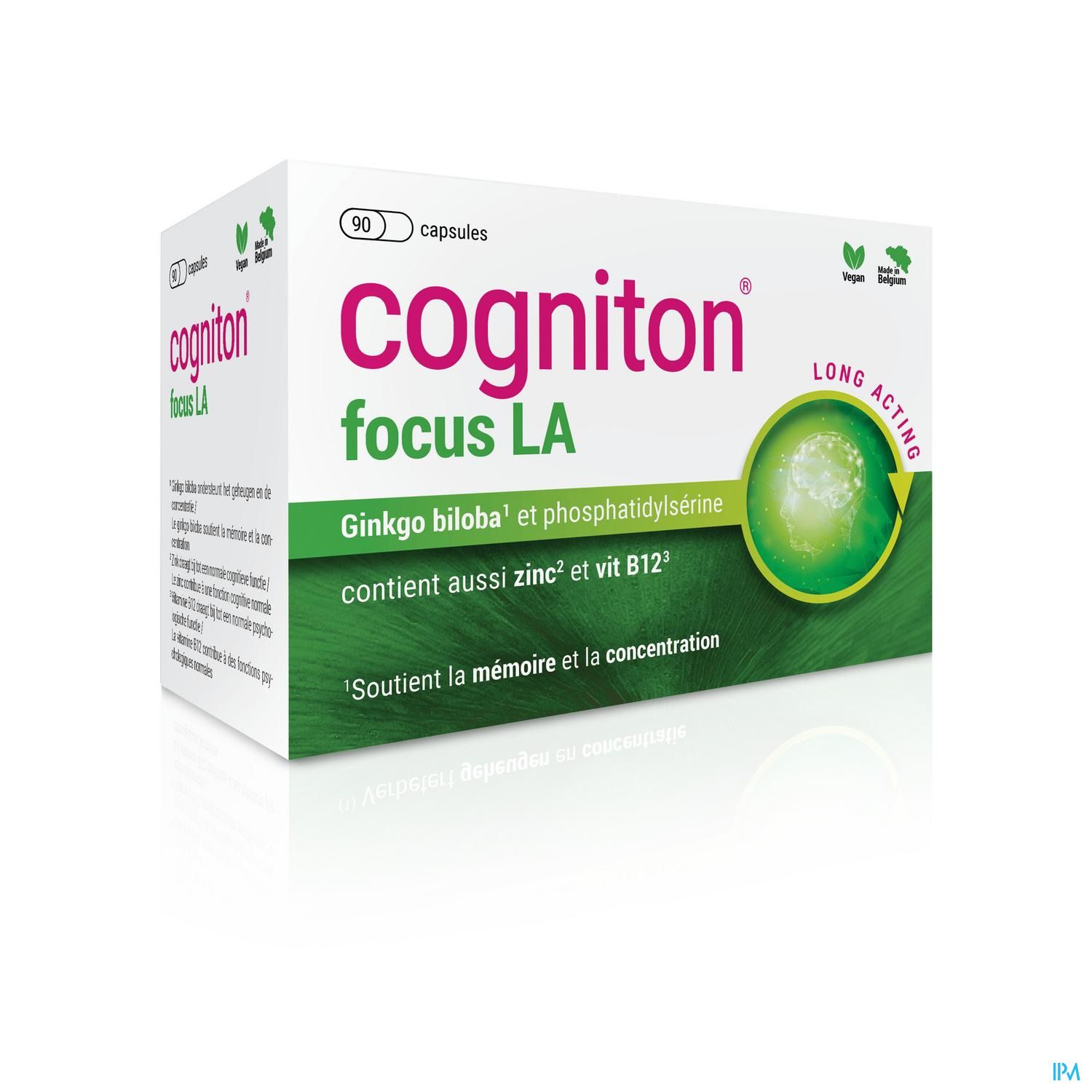 Cogniton focus LA est un complément alimentaire qui peut être utilisé pour soutenir la mémoire et pour contrer les troubles de la mémoire.* Cogniton focus LA contient une dose plus élevée de principes actifs et dispose avec Ginkosome d'une technique améliorée où l'extrait de Ginkgo biloba et la phosphatidylsérine sont complexés, permettant une meilleure absorption des molécules actives et une action prolongée.