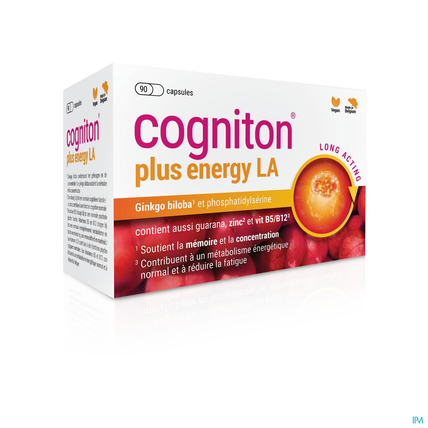 Cogniton plus energy LA bevat ook dezelfde Ginkgosome techniek met lange werking en betere absorptie en daarbovenop vitamine B5 en Guarana, wat zorgt voor extra energie en minder vemoeidheid.**