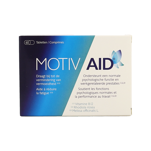 Motiv-Aid est un complément alimentaire à base de vitamine B12, de Rhodiola rosea et de Melissa officinalis.