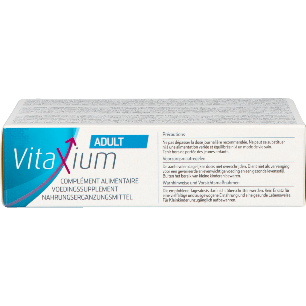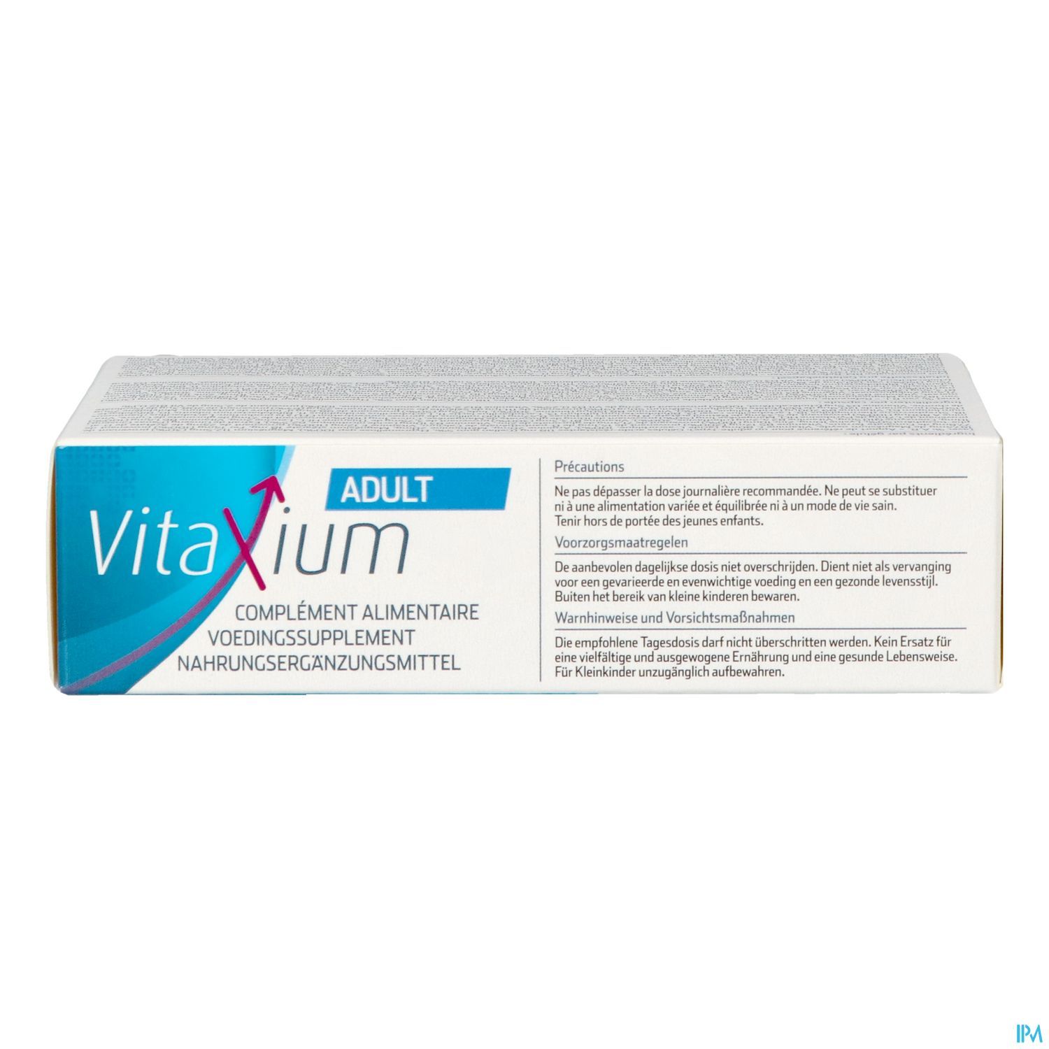 QU'EST-CE QUE VITAXIUM ADULT : Vitaxium Adult est un complément alimentaire qui vous aide à retrouver votre niveau d'énergie, lors de fatigues passagères ou de périodes exigeantes, et vous permet de répondre positivement aux obligations quotidiennes de la vie active.