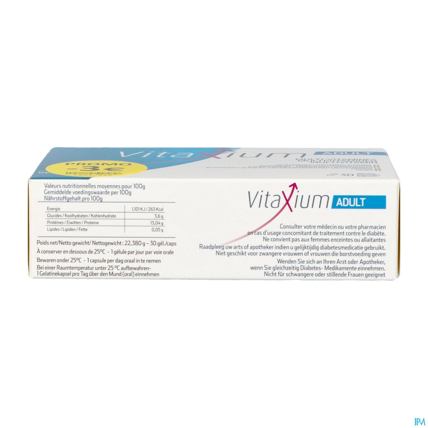 SUBSTANCES ACTIVES : Vitaxium Adult est un ensemble de 36 composants pour contribuer à retrouver un niveau d'énergie et à réduire la fatigue. Il contient des un complexe vitamino-minéral avec des acides aminés, du magnésium, du ginseng et du Co enzyme Q10, qui sont les principales substances actives.
