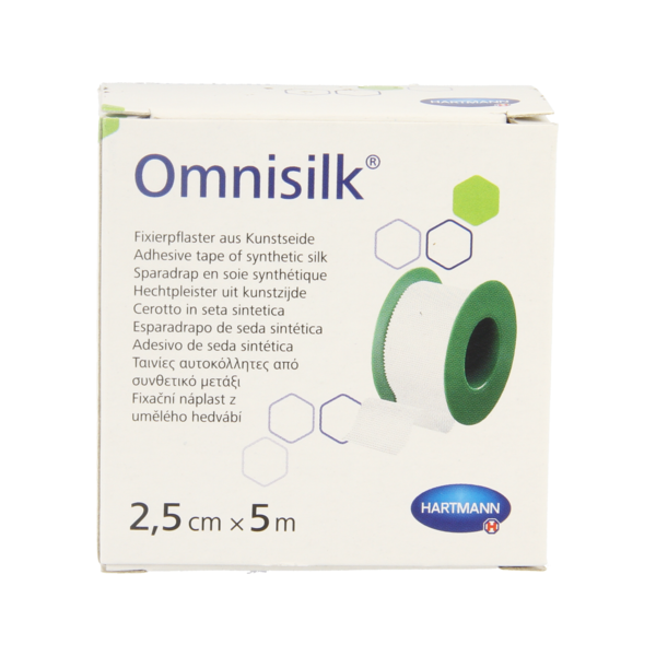 Omnisilk® est perméable à l'air et l'humidité. Le sparadrap garantit une fixationsûre avec un retrait indolore ne laissant pas de résidus de colle sur la peau. Les bords dentelés permettent de déchirer facilement Omnisilk®. Omnisilk® n'absorbe pas les rayons X et ne doit donc pas être retiré pour un examen RX.