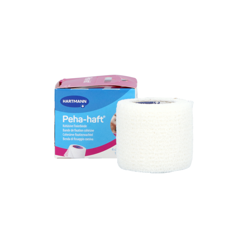 Bande de fixation élastique et cohésive à double effet de liaison grâce à la structure crêpée et à la micro-imprégnation ; extensible à 85 % environ ; faible consommation de matériau grâce à l'effet auto-adhésif élevé ; quelques tours seulement sont nécessaires pour une fixation sûre des pansements ; n'adhère pas à la peau, aux cheveux ou aux vêtements ; respirant et agréable pour la peau.