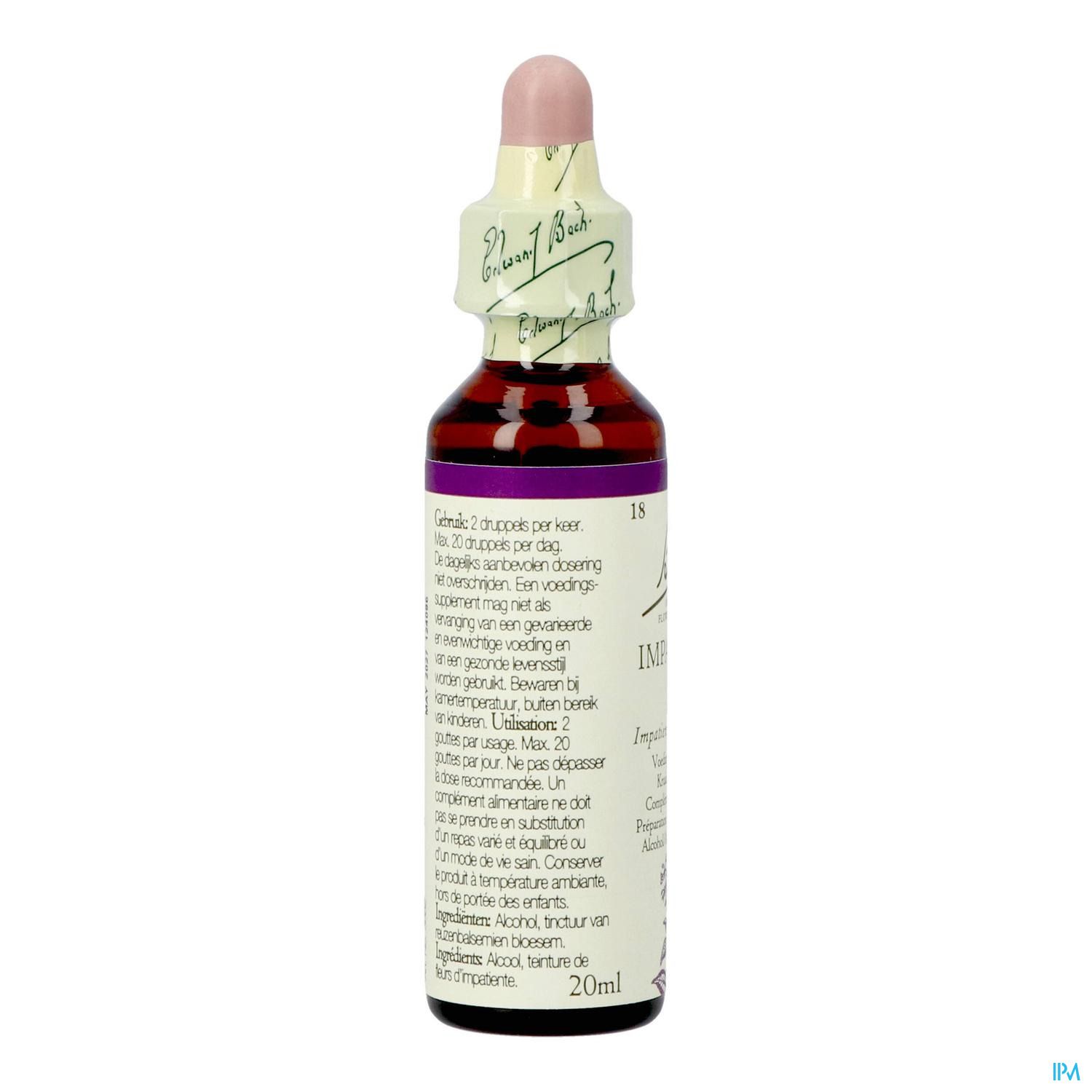 Bach Flower impatiens est utilisée en fonction des émotions et sentiments à maîtriser suivants: solitude, impatient, irritable, précipitation.