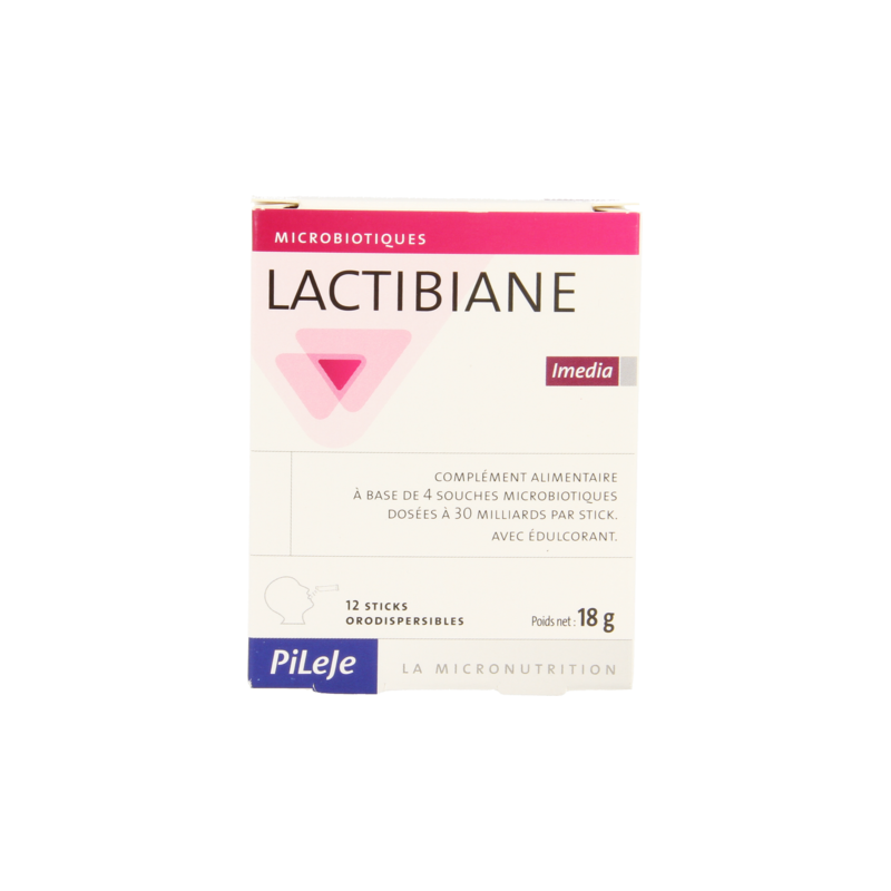 Lactibiane Imedia est composé de 4 souches microbiotiques dosées à 30 milliards par stick orodispersible :