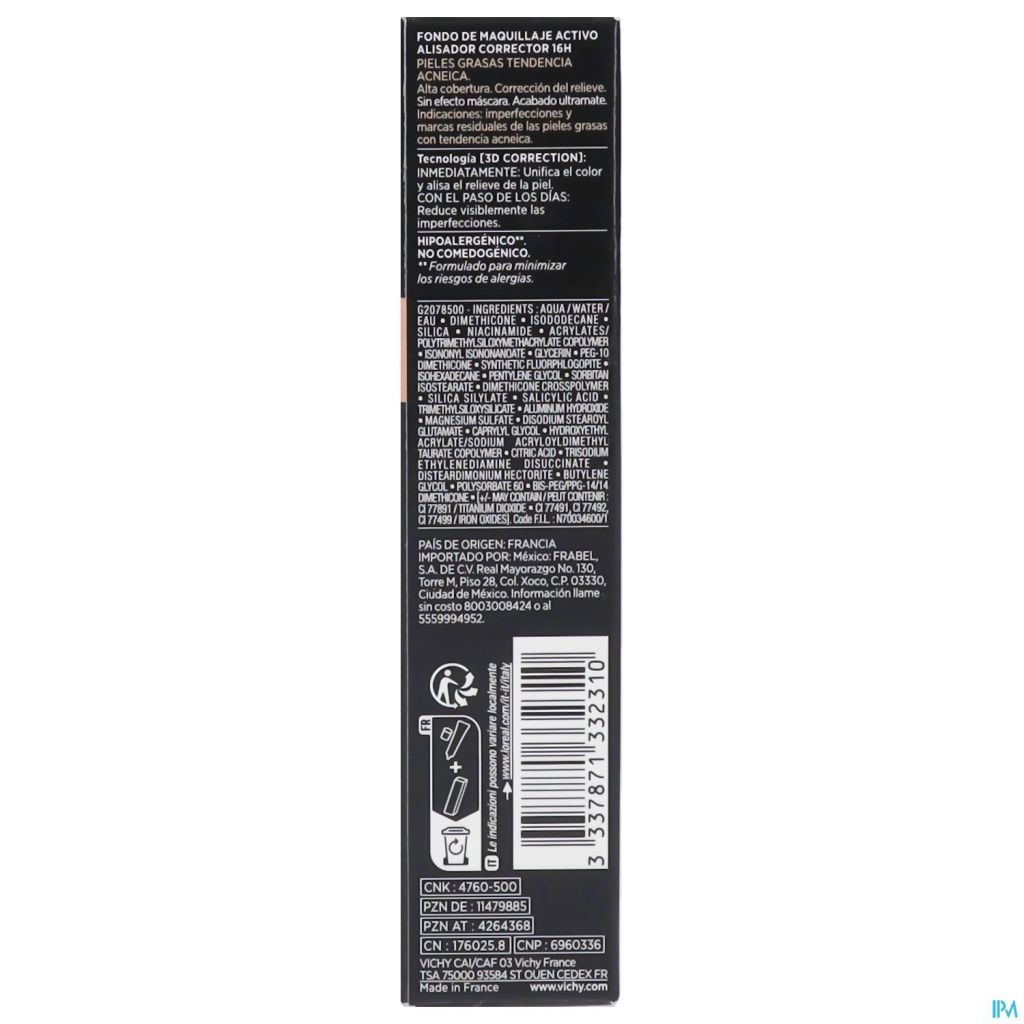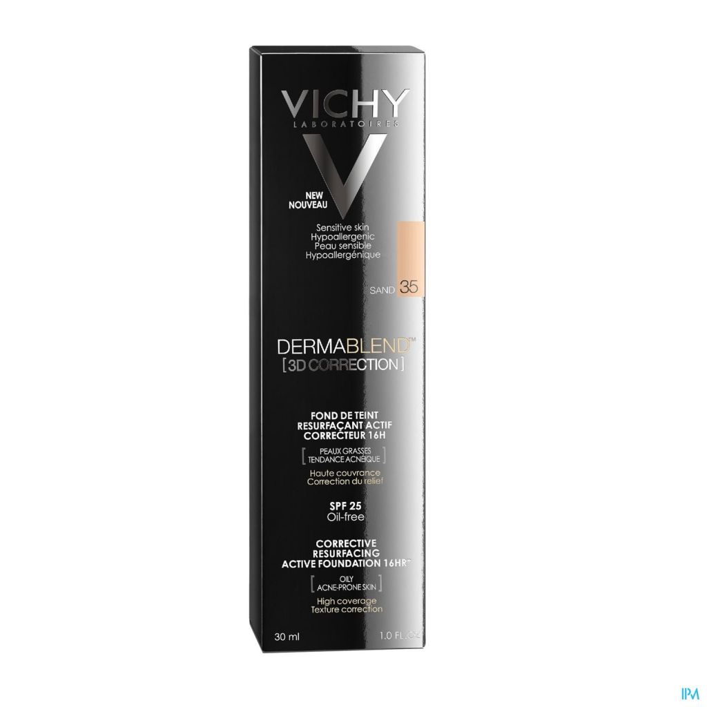 Le Fond de teint 3D Dermablend de Vichy a une haute couvrance sans accentuer la texture de la peau. Enrichi d'acide salicylique, ce fond de teint renouvelle la surface de la peau et améliore la qualité de la peau, pendant que l'épéruline a un effet apaisant. Jour après jour, il diminue visiblement les imperfections. Convient à la peau grasse à imperfections.