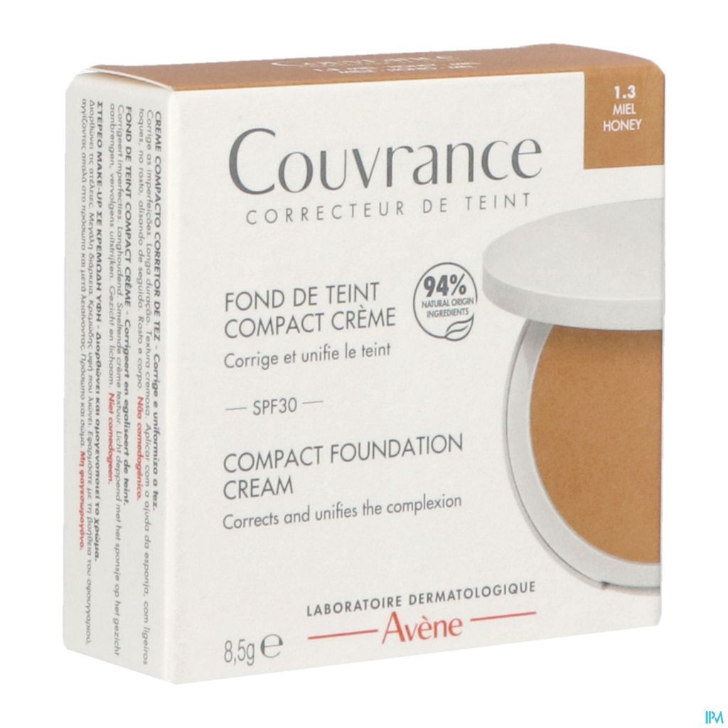 À la recherche de produits de maquillage efficaces, d'origine naturelle et adaptés à votre peau sensible ? Tournez-vous vers le maquillage correcteur des Laboratoires dermatologiques Avène. Ce fond de teint compact HAUTE couvrance et HAUTE tolérance assure une correction immédiate des imperfections - même les plus sévères (rosacée, vitiligo, psoriasis, angiome…). Une tenue 12H* pour un teint unifié et lumineux. Une formule WATERPROOF dans une texture crème ultra-douce et fondante qui nourrit et hydrate la peau. Une protection SPF30** contre les UV. Enrichie en Kaolin, qui a un effet MATIFIANT, pour une peau non grasse. Testé sous contrôle dermatologique et ophtalmologique. Non comédogène. 94 % d'ingrédients d'origine naturelle.