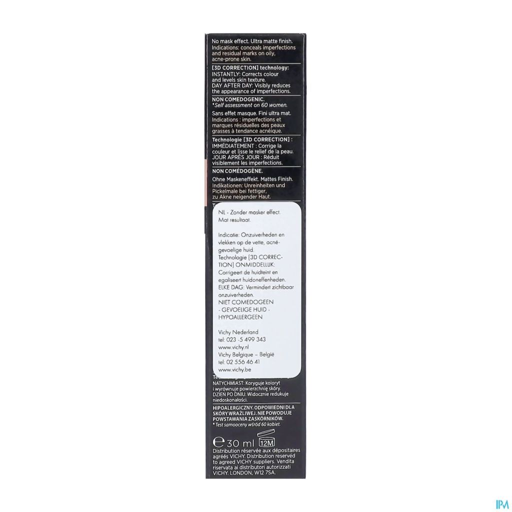Le fond de teint Dermablend 3D de Vichy offre une couvrance élevée sans accentuer le grain de peau. Enrichi en acide salicylique, ce fond de teint aide à renouveler la surface de la peau et améliore sa qualité, tandis que l'éperuline a un effet apaisant. Jour après jour, il réduit visiblement les imperfections. Convient aux peaux grasses à impures.