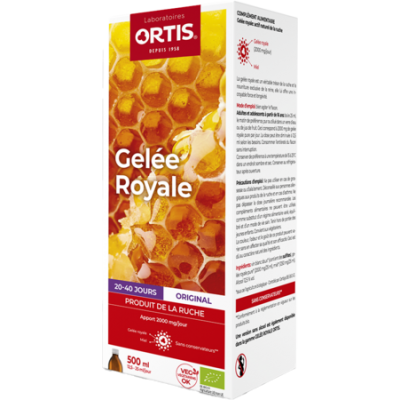 Agiter vigoureusement la bouteille. Consommer le produit, pur ou dilué dans de l'eau ou du jus de fruits, pendant le repas, le matin ou à midi. Dose d'attaque: boire 25 ml correspondant à 2000 mg de gelée royale pure par jour. Dose d'entretien: boire 12,5 ml correspondant à 1000 mg de gelée royale pure par jour. Consommer l'entièreté du flacon sans interruption. Une fois ouverte, conserver la bouteille au frigo. Il est conseillé de ne pas dépasser la quantité journalière recommandée. Déconseillé aux personnes allergiques aux produits de la ruche et en cas d'asthme. Les compléments alimentaires ne peuvent être utilisés comme substitut d'un régime alimentaire varié, équilibré et d'un mode de vie sain. Tenir hors de portée des jeunes enfants. Convient aux végétariens. La couleur, l'odeur et le goût de ce produit peuvent varier sans en affecter sa qualité et son efficacité. Ceci est dû au caractère naturel des ingrédients.
