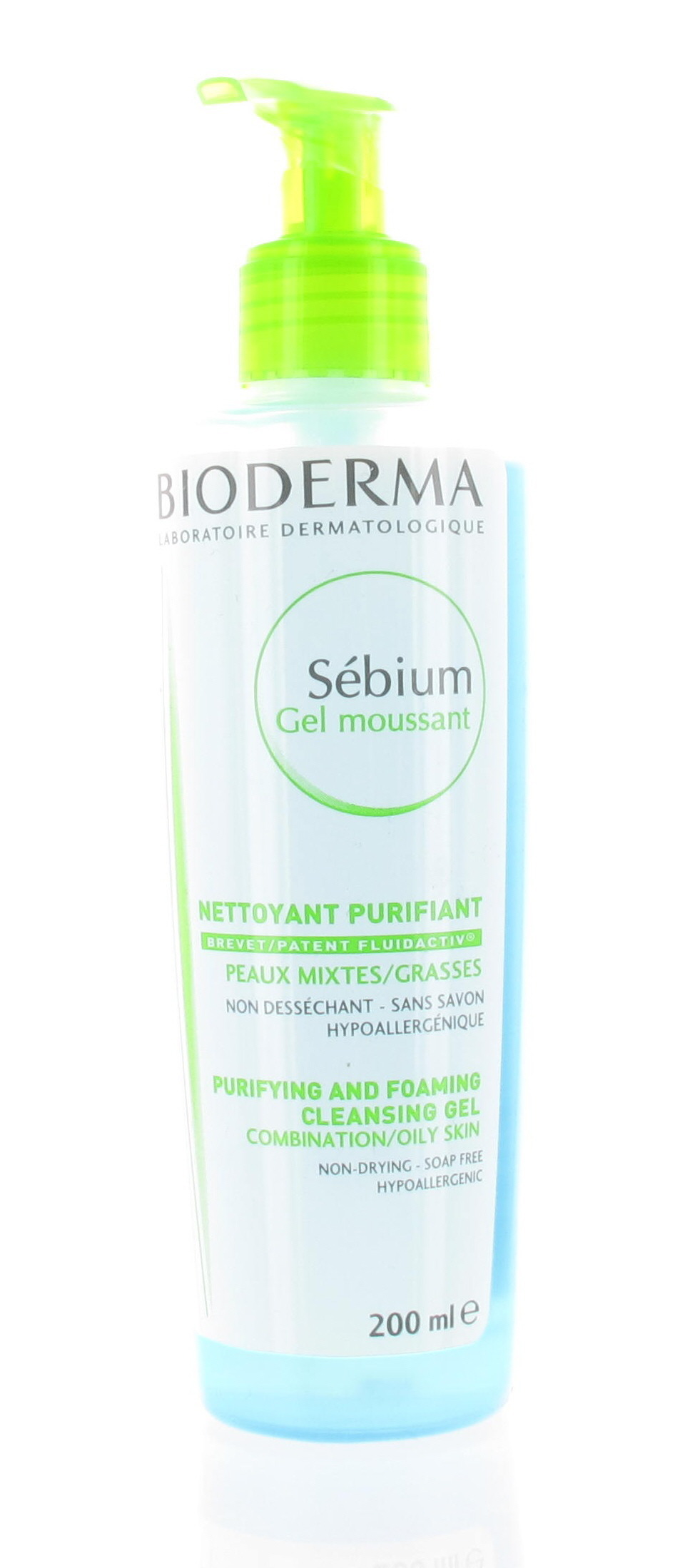 Bioderma Sébium Gel moussant nettoie et purifie la peau en douceur sans dessécher. Il limite la sécrétion de sébum et assainit l'épiderme. Le brevet exclusif Fluidactiv normalise biologiquement la quantité de sébum et évite l'obstruction des pores. Non comédogène. Sans savon.