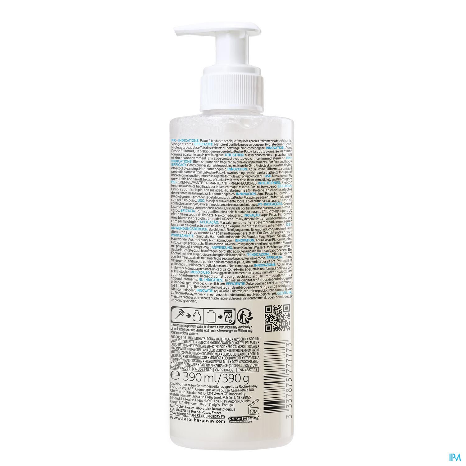La crème nettoyante EFFACLAR H- ISO-BIOME de La Roche-Posay nettoie, purifie, adoucit et aide à hydrater la peau. Elle réduit les effets secondaires des traitements desséchants contre l'acné ou la sensation de tiraillement de la peau. Elle aide à réduire les imperfections. Elle peut être utilisée en association avec des traitements à base d'isotrétinoïne. La crème nettoyante EFFACLAR H est un nettoyant hydratant pour le visage destiné aux peaux grasses fragilisées par des traitements desséchants. Testée sous contrôle dermatologique en association avec des traitements desséchants contre l'acné. Non comédogène.