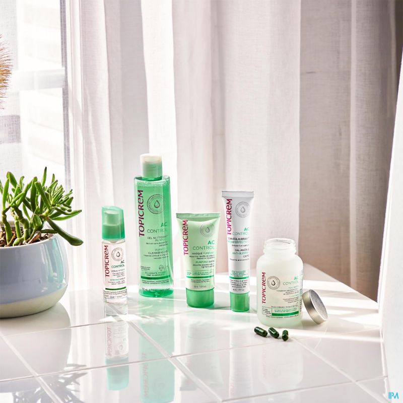 AC CONTROL Gel Nettoyant Purifiant, nettoie en douceur et démaquille la peau tout en éliminant l'excès de sébum. Le gel nettoyant purifiant offre une texture moussante facile à rincer. Notre gel nettoyant visage et corps laisse la peau nette, purifiée, matifiée et fraîche, sans sensation de tiraillement.