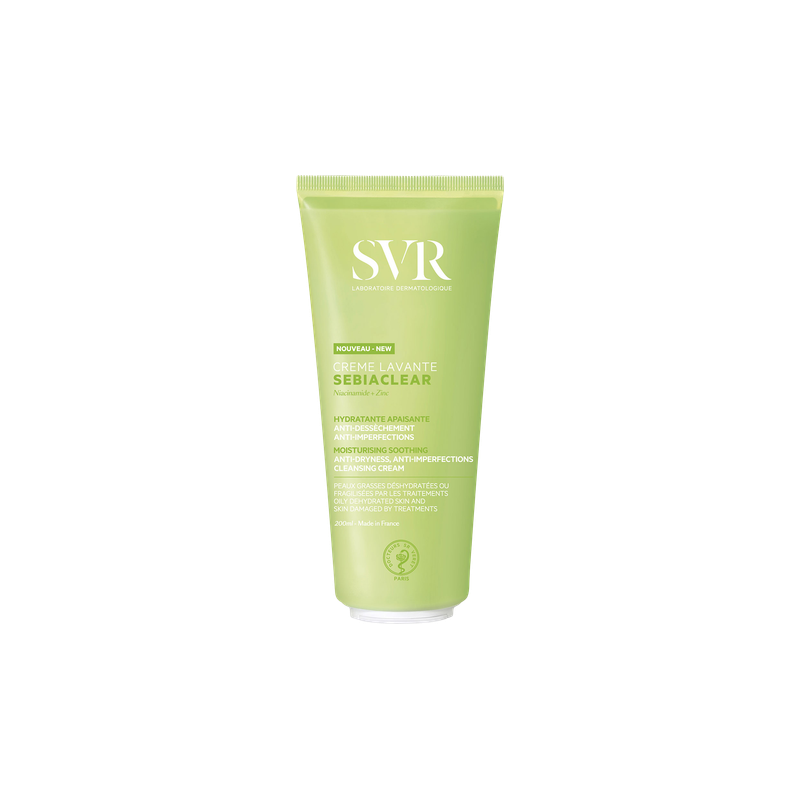 Nettoyant crémeux pour le visage et le corps, à la texture douce et enveloppante, destiné aux peaux déshydratées à tendance acnéique et aux peaux fragilisées par des traitements desséchants. Parce que même les peaux sèches peuvent avoir des boutons, Sebiaclear Crème Lavante, grâce à sa combinaison de zinc et de niacinamide, purifie la peau et apaise les irritations, tout en renforçant la barrière cutanée. La peau est douce, fraîche et confortable.