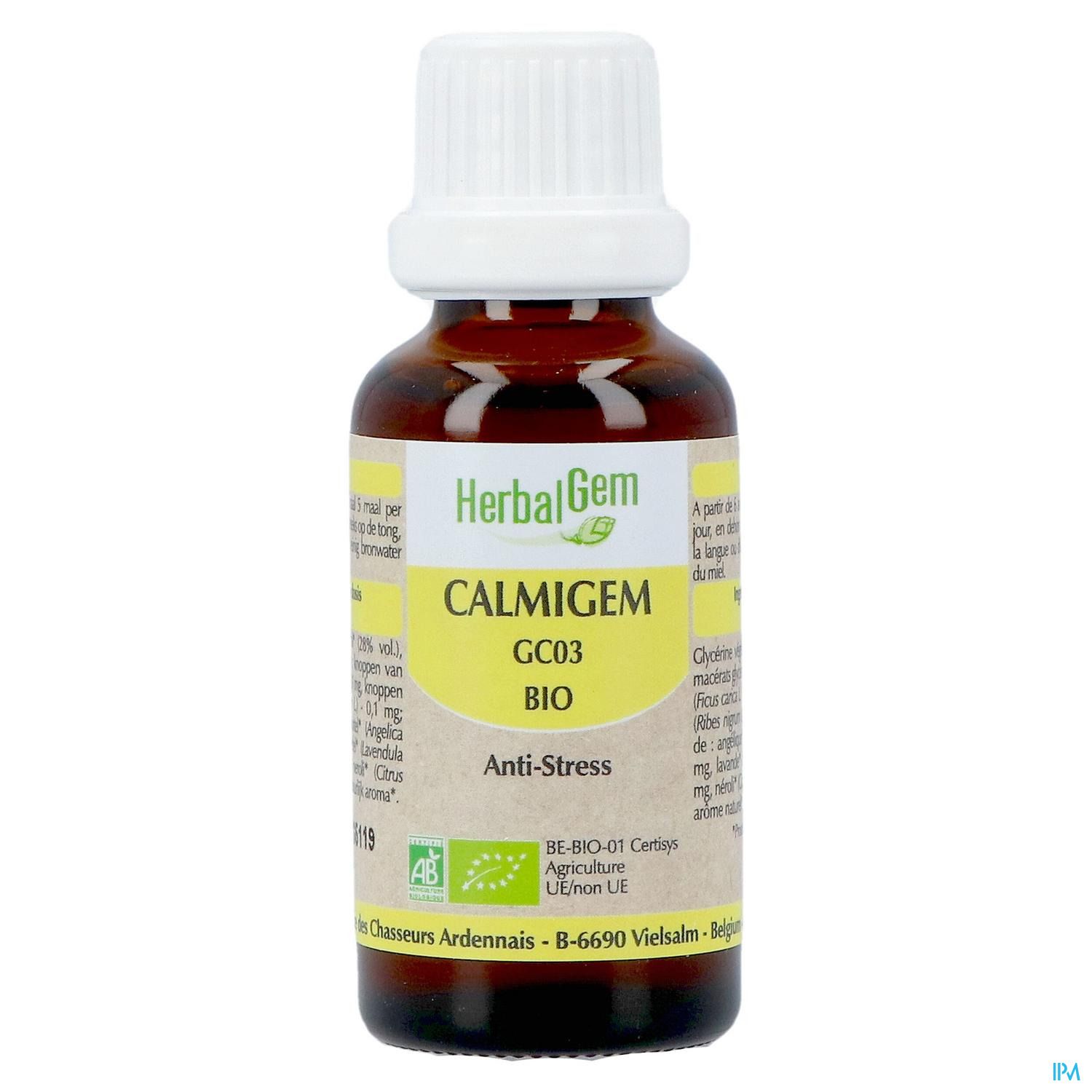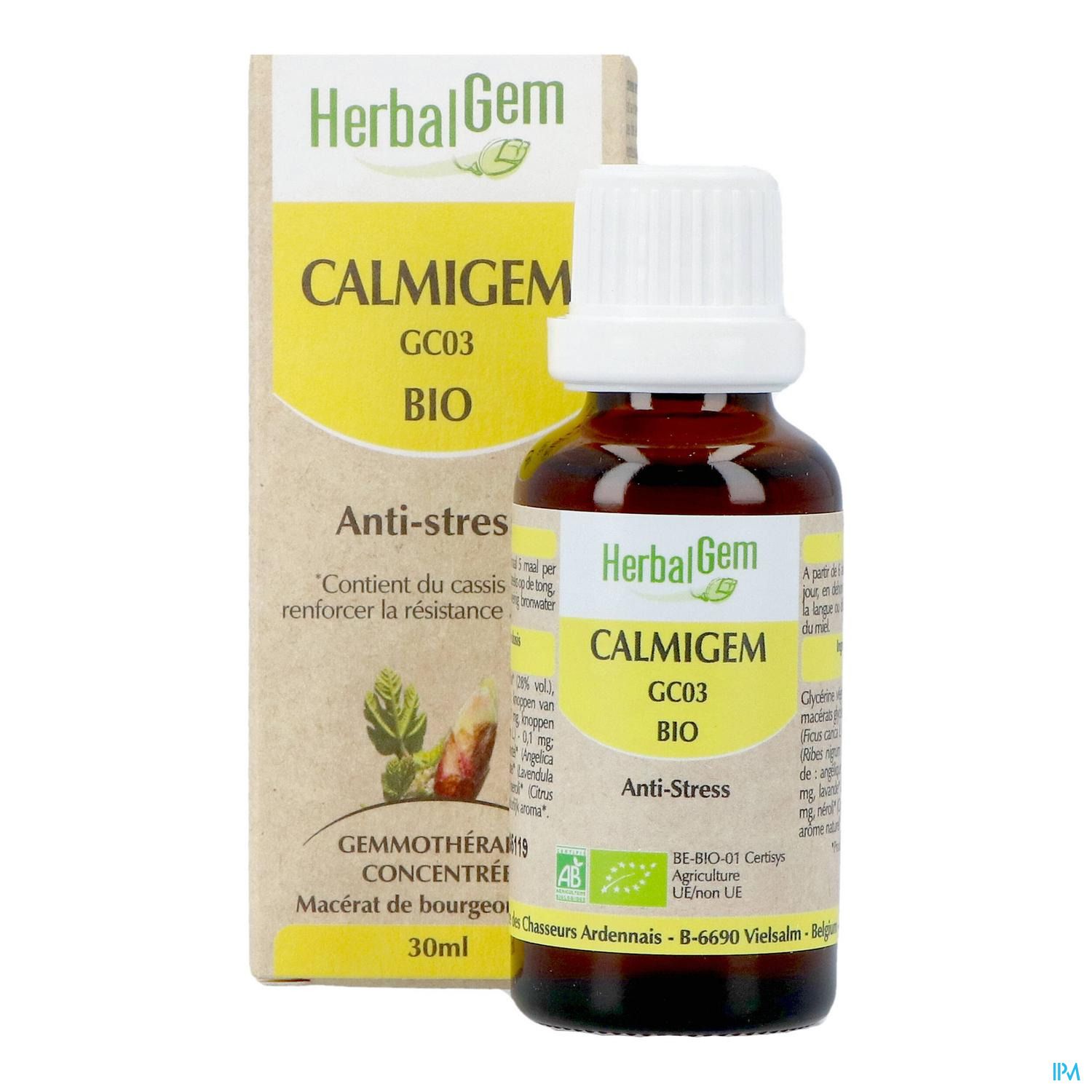 CALMIGEM aide en cas de stress passager grâce à l'action de 2 bourgeons et de 3 hydrolats. Le figuier est connu pour ses propriétés relaxantes, l'hydrolat de lavande vraie joue un rôle de nettoyant énergétique du psychisme, l'hydrolat d'angélique combat l'instabilité psychologique et l'oranger agit sur les chocs émotionnels. Le bourgeon de cassis va potentialiser l'ensemble des composants actifs du complexe anti-stress.