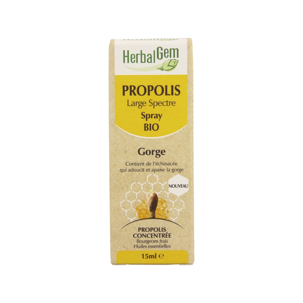 Propolis Large Spectrum Throat Spray ORGANIC est un complément alimentaire du laboratoire HerbalGem, expert en gemmo concentré à base de bourgeons frais et biologiques.