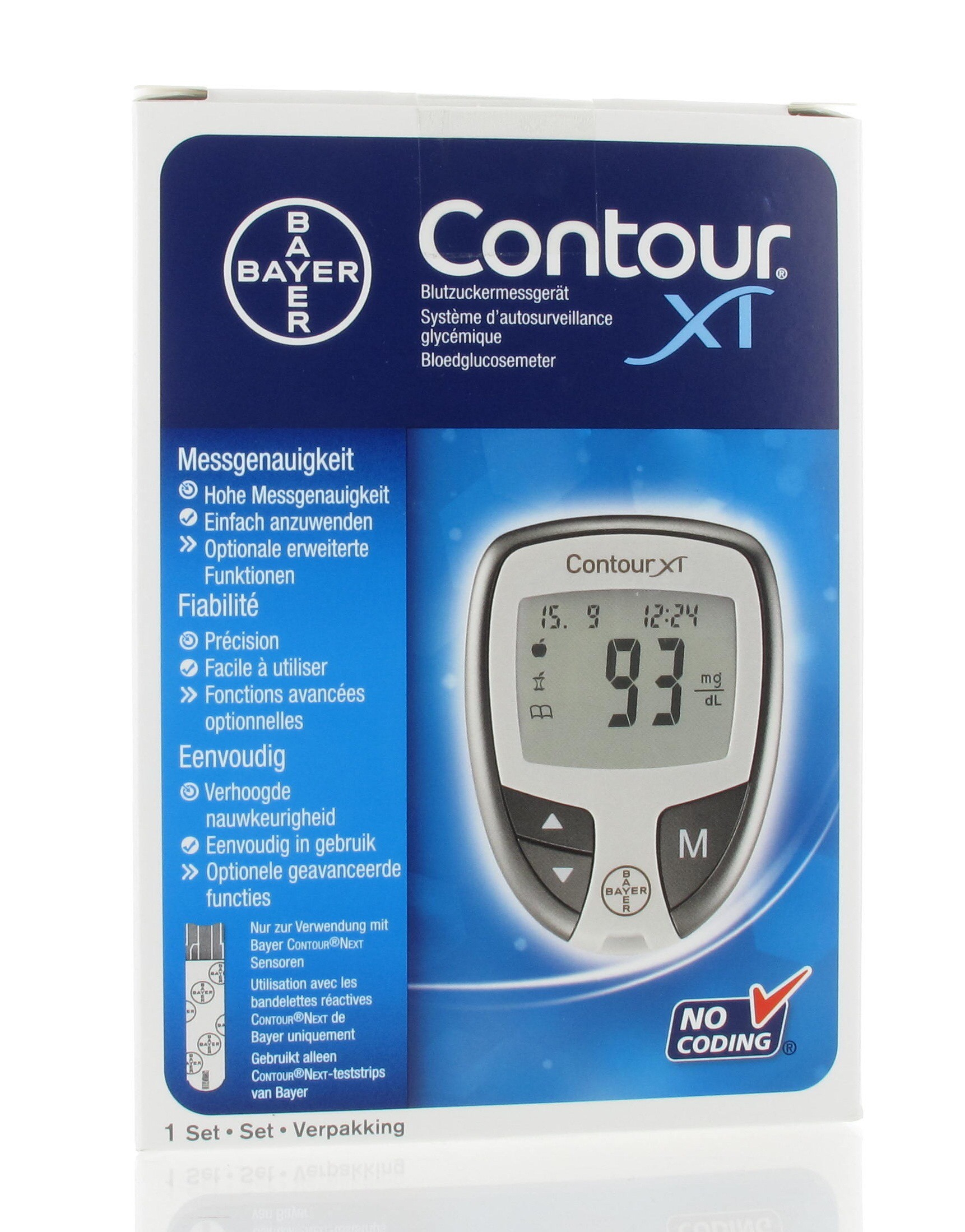 - Utilise la nouvelle tigette Contour NEXT®, par conséquent l'influence des substances interférentes fréquentes de la mesure est éliminé.