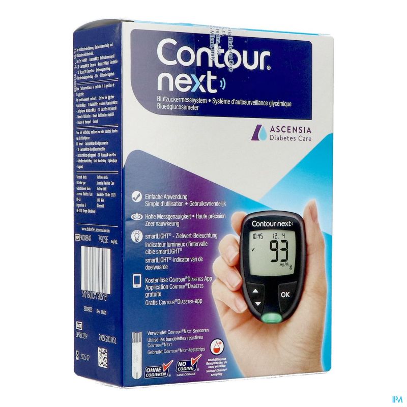 - CONTOURNEXT est le seul lecteur doté d'un écran de compte à rebours de 60 secondes qui donne aux patients le temps d'appliquer plus de sang sur la même bandelette réactive.