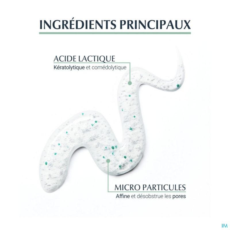 - Contient de l'acide lactique et des microparticules pour libérer les pores