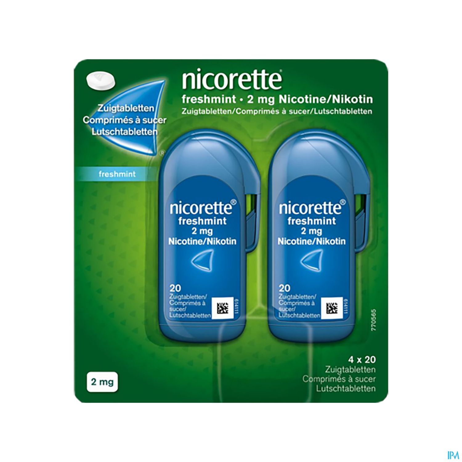 - Les pastilles Nicorette® Freshmint sont sans sucre et vous aident à arrêter de fumer. Elles conviennent aux personnes qui fument 20 cigarettes ou plus par jour. Pour les fumeurs moins dépendants, des pastilles de 2 mg sont recommandées.