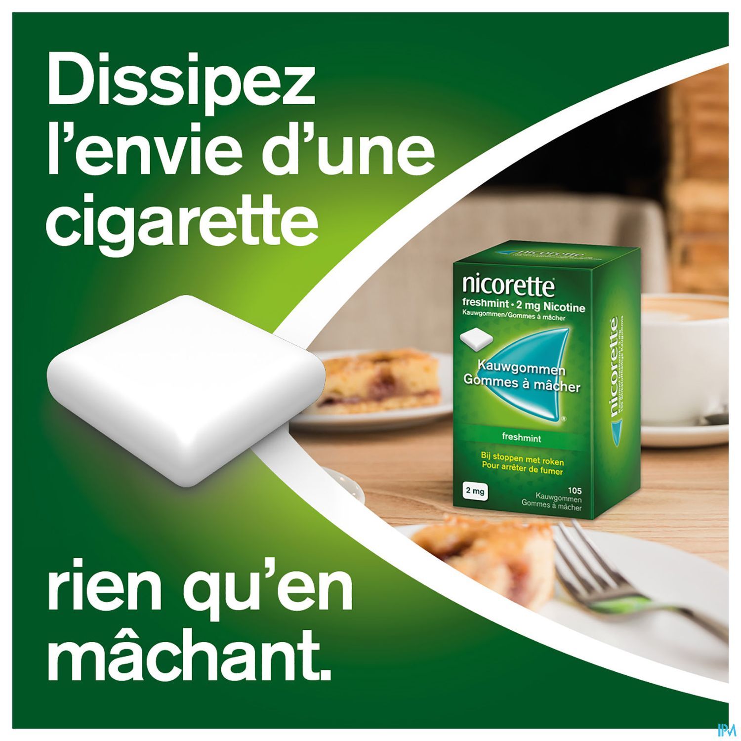 - Nicorette® Freshmint Gomme à Mâcher réduit l'envie de fumer. En mâchant la gomme à mâcher, l'ingrédient actif est libéré progressivement. Également disponible en Classic et Fruit.