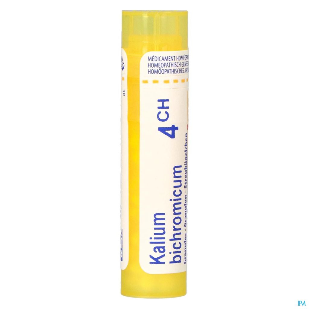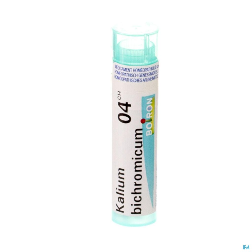 Vous pouvez commander en ligne kalium bichromicum 4ch gr 4g boiron, distribué(e) par boiron sur Pharmacodel, votre pharmacie en ligne.