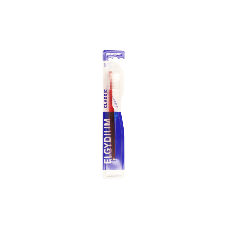 Les bijoux, la maroquinerie et la haute couture ont leurs pièces emblématiques... Les brosses à dents aussi ! ELGYDIUM Classic est une brosse à dents intemporelle et indispensable, dotée d'une tête large et de poils en nylon de haute qualité, doux pour les dents et les gencives. La technologie ELGYDIUM à l'extrémité d'un manche ergonomique, à utiliser de préférence trois fois par jour après les repas avec un dentifrice qui protège contre les caries.
