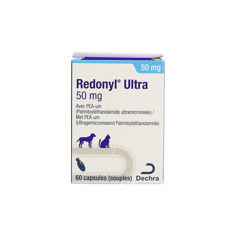 Votre chien ou votre chat souffre-t-il d'une perte de poils excessive et/ou de dermatose ? Essayez dès maintenant Redonyl Ultra ! Ce complément alimentaire contient des taux élevés de PEA (palmitoyléthanolamide, un anti-inflammatoire naturel), d'acides gras oméga 3 et 6 et de biotine pour soutenir la peau et le pelage. Redonyl peut être utilisé de manière temporaire ou chronique.