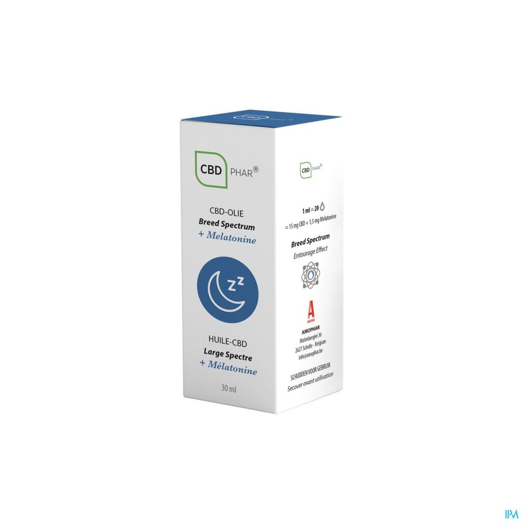 CBD-PHAR® Large Spectre + mélatonine est présenté dans un flacon de 30 ml. 1 ml représente 20 gouttes d'huile et contient 15 mg de CBD et 1,5 mg de mélatonine.