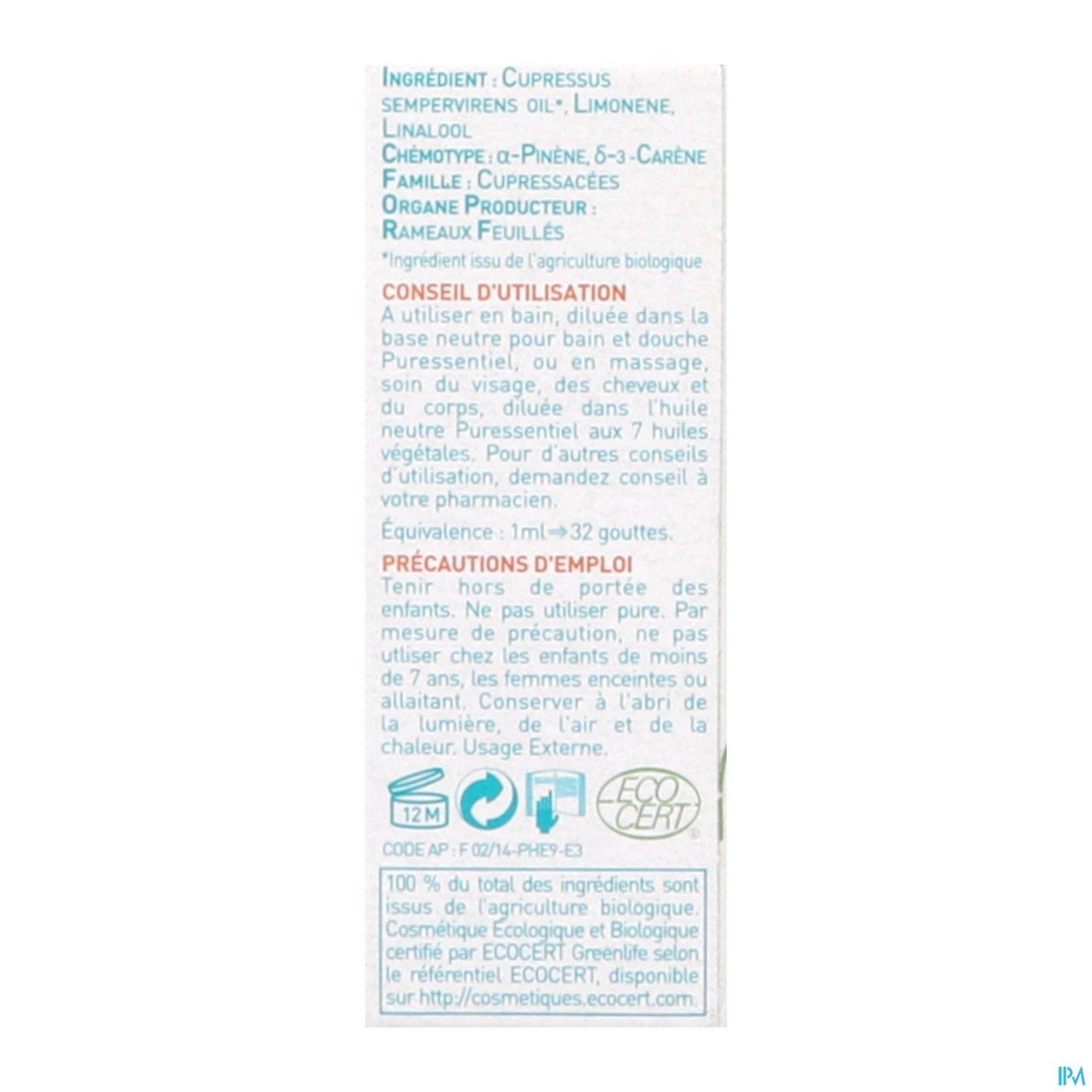 A utiliser en bain, diluée dans la base neutre pour bain et douche Puressentiel, ou en massage, soin du visage, des cheveux et du corps, diluée dans l'huile neutre Puressentiel aux 7 huiles végétales.Pour d'autres conseils d'utilisation, demandez conseil à votre pharmacien. Équivalence : 1ml 32 gouttes. Tenir hors de portée des enfants. Ne pas utiliser pure. Par mesure de précaution, ne pas utiliser chez les enfants de moins de 7 ans, les femmes enceintes ou allaitant. Conserver à l'abri de la lumière, de l'air et de la chaleur. Usage Externe.