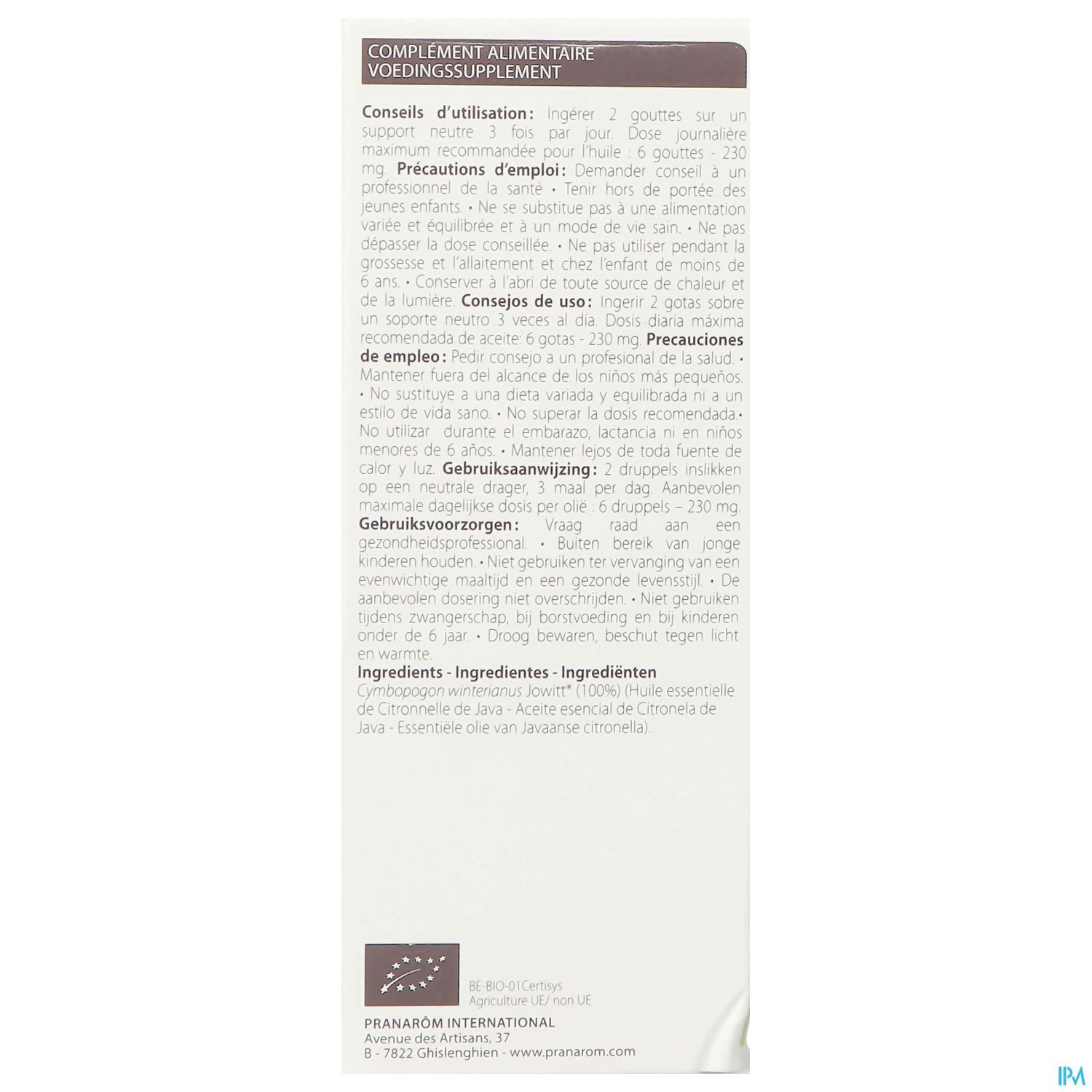Pranarom Huile essentielle Aerienne Citronnelle Java Bio 30 Ml