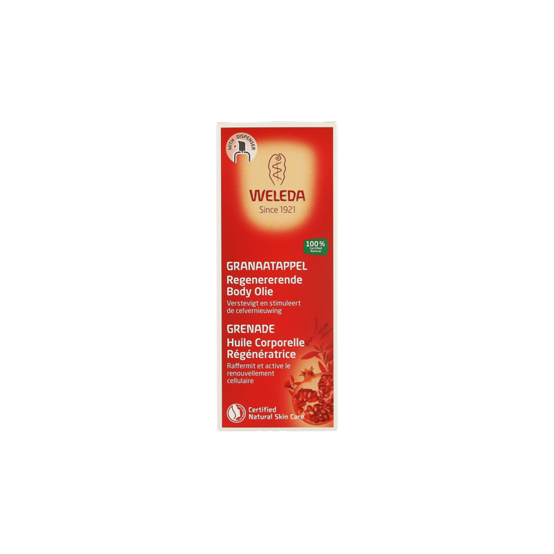 Weleda Grenade Huile Corporelle Régénératrice est une huile pour le corps qui renforce la peau et possède un effet antioxydant. Ses ingrédients favorisent le renouvellement cellulaire de la peau et retardent les effets du vieillissement cutané.