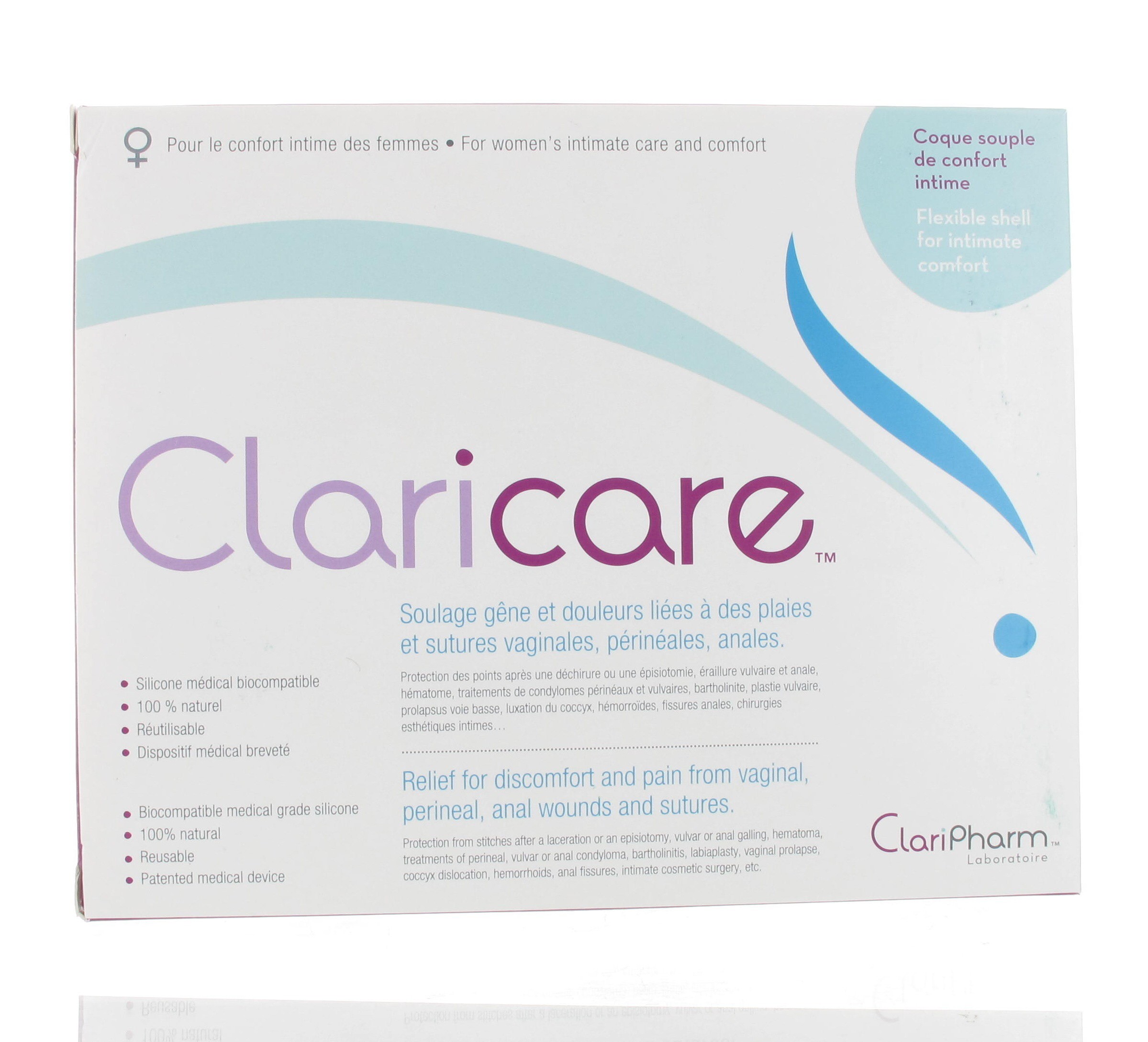 Claricare est une protection des points après une déchirure ou une épisiotomie, éraillure vulvaire et anale, hématome, traitements de condylomes périnéaux et vulvaires, bartholinite, plastie vulvaire, prolapsus voie basse, luxation du coccyx, hémorroïdes, fissures anales, chirurgies esthétiques intimes...