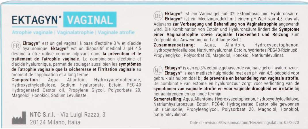 • Ektagyn® est un gel vaginal à base d'ectoïne 3 % et d'acide hyaluronique.