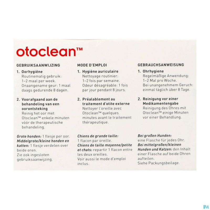 OTOCLEAN contient des ingrédients kératolytiques, dissolvant le cérumen, adoucissants, hygiéniques et hydratants, adaptés à l'hygiène et au soin du conduit auditif externe des chiens et des chats. Il permet ainsi d'éliminer l'accumulation de saletés, de cérumen ou de sécrétions dans le conduit auditif.