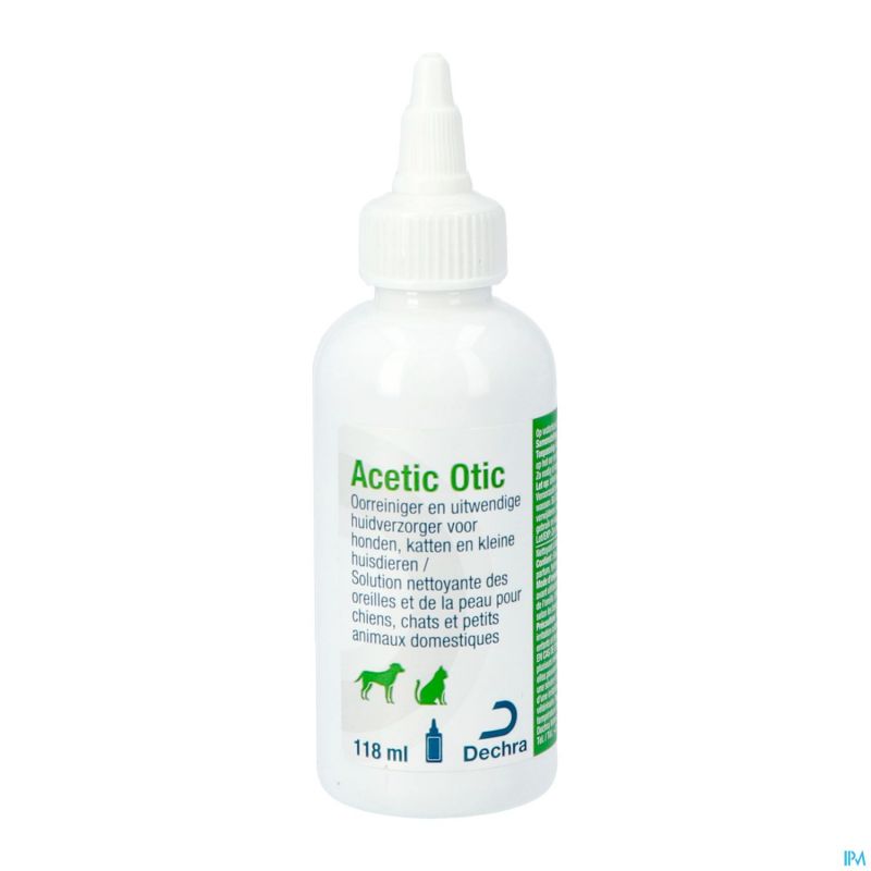 Utilisation sur la peau : pour le nettoyage spécifique de l'épiderme : appliquez Acetic Otic 2 à 3 fois par jour.
