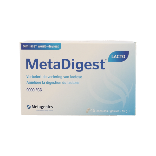 MetaDigest Lacto contient de la lactase. La lactase est une enzyme qui améliore la digestion du lactose (dans le lait, le fromage et autres produits laitiers) chez les individus ayant des difficultés à le digérer.