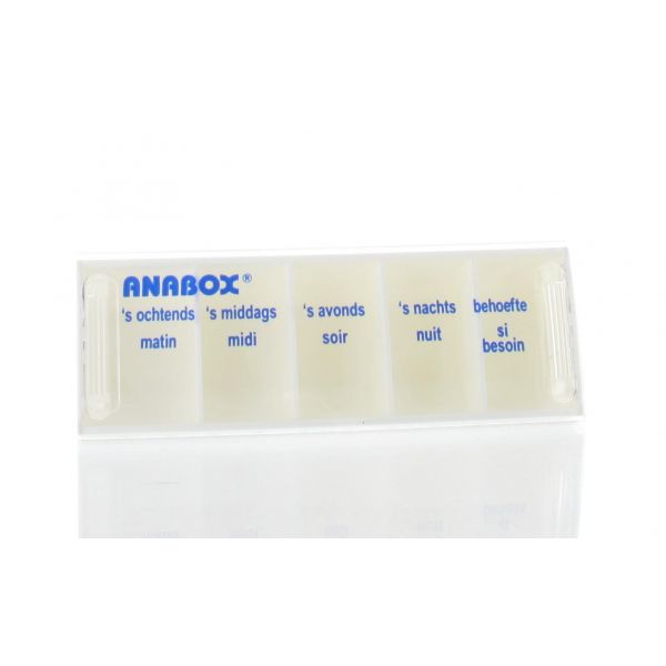 Anabox est un pilulier pour une journée composé de 5 compartiments.